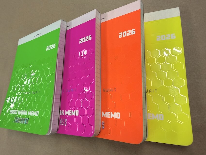 現場に色を灯すメモ帳(ルミナス) 無機質な現場にも、鮮やかな彩りを。 HardWork Memo LUMINOUS(ルミナス)は、タフでヘヴィな現場に“ビビッドな光”を差し込むメモ帳です。
